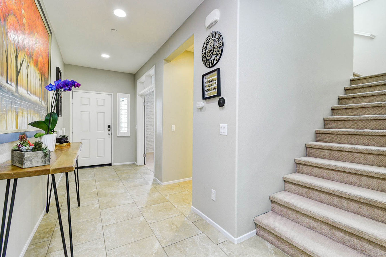 Welcome home to 16759 Fern Lane in Fontana. This beautifully presented residence is nestled in the heart of the desirable Bella Strada community. Built with modern luxuries and comfort in mind, the thoughtfully designed layout boasts 4 bedrooms, 3 total bathrooms, and 2,188 square feet of spacious living. The inviting curb appeal evokes a welcoming first impression with manicured landscaping, a charming façade, and a prominent corner-lot presence. Upon entering, elegant tile flooring flows throughout the main living areas while plush carpeting provides added comfort. Plantation shutters and a soft neutral pallet enhance the aesthetics of the impressive interior. A main level bedroom off the entry offers versatility for a home office or guest quarters. Bathed in natural light, the living room is adorned with sparkling windows, capturing picturesque views of the outdoors while seamlessly segueing into the adjacent dining room. The open concept kitchen is a dream, complete with sleek granite countertops, stainless steel appliances, and a stacked-stone backsplash. The custom trend of alfresco entertaining is effortless with direct access to the patio from the dining area. Completing the footprint of the well-appointed ground floor is a powder room, conveniently located in an accessible area for visitors. Adding to the home's appeal is a quaint upstairs alcove, perfect for use as a reading nook, study area, or cozy media space. The oversized primary bedroom features a luxurious ensuite bathroom and dual walk-in closets, creating the ultimate haven for rest and relaxation. Two additional guest bedrooms are in close proximity to a tasteful full bathroom, ensuring ample space and privacy. A dedicated laundry room adds ease and efficiency to streamline daily routines. The backyard is a cohesive extension of the home, showcasing exquisite stamped concrete and a large covered patio with ceiling fans. Fruit trees, lush landscaping, and a peaceful garden along the side yard elevate the natural elements of the stunning exterior. Bella Strada encompasses a vibrant community with a wealth of resort-style amenities. Residents enjoy access to a sparkling community pool, well-equipped BBQ stations, a welcoming clubhouse, and a family friendly park. Fostering a close-knit neighborhood atmosphere, Bella Strada harmoniously blends recreation and leisure. This home truly has it all so come and experience the unparalleled opportunity that awaits.
